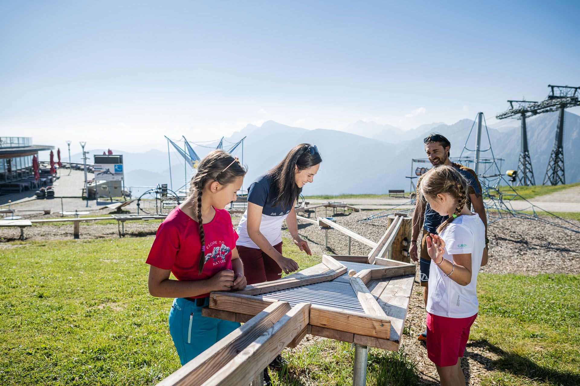 Kinderfreundliche Spielbereiche und Aktivitäten direkt am Gipfel oder im Parkbereich.